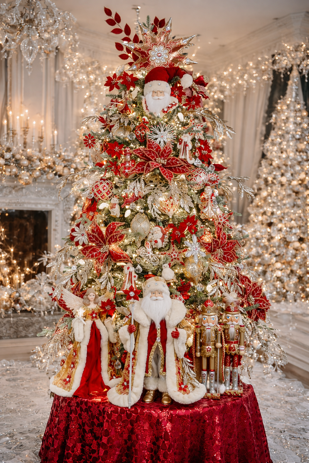 Item # S448816" 8-Point Red, Gold & Silver Flower Motif Tree Top