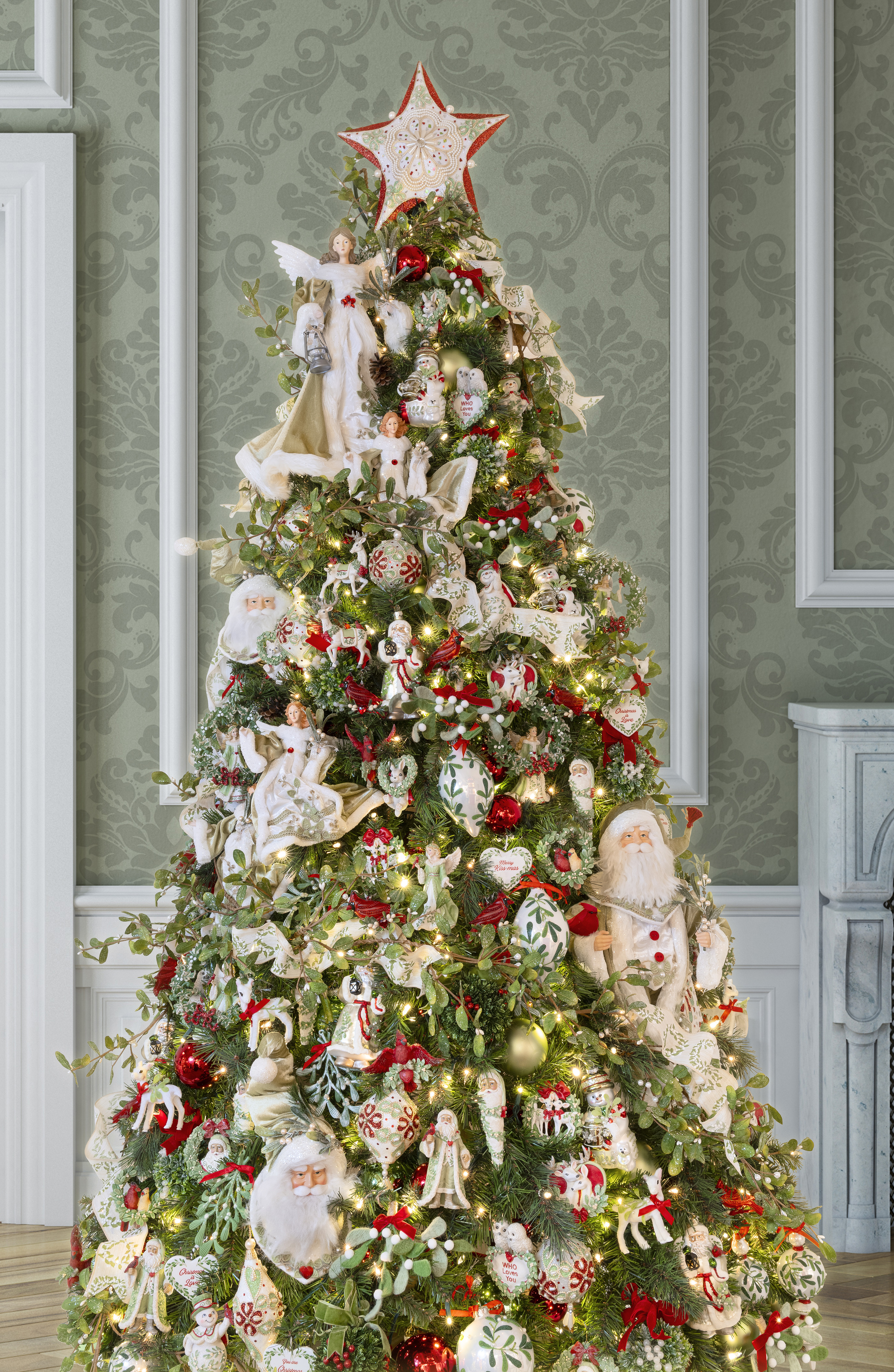 Item # S447413.5" Red, Green & White Mistletoe Star Treetop
